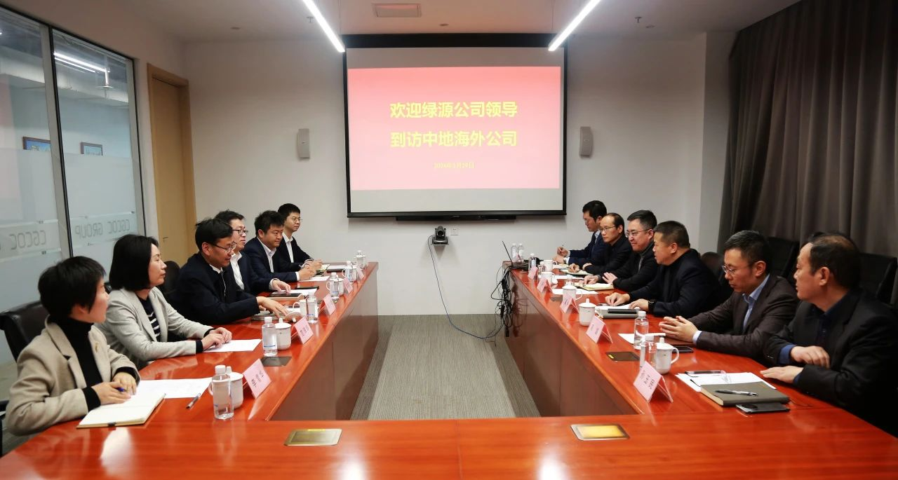 3月29日下午,中地海外集團有限公司董事長、黨委書記蘭眉中會見來訪的中石化綠源地熱能開發有限公司董事長、黨委書記高小榮一行,雙方就新能源業務國際化發展進行深入交流。公司副總經理高磊參加座談。
