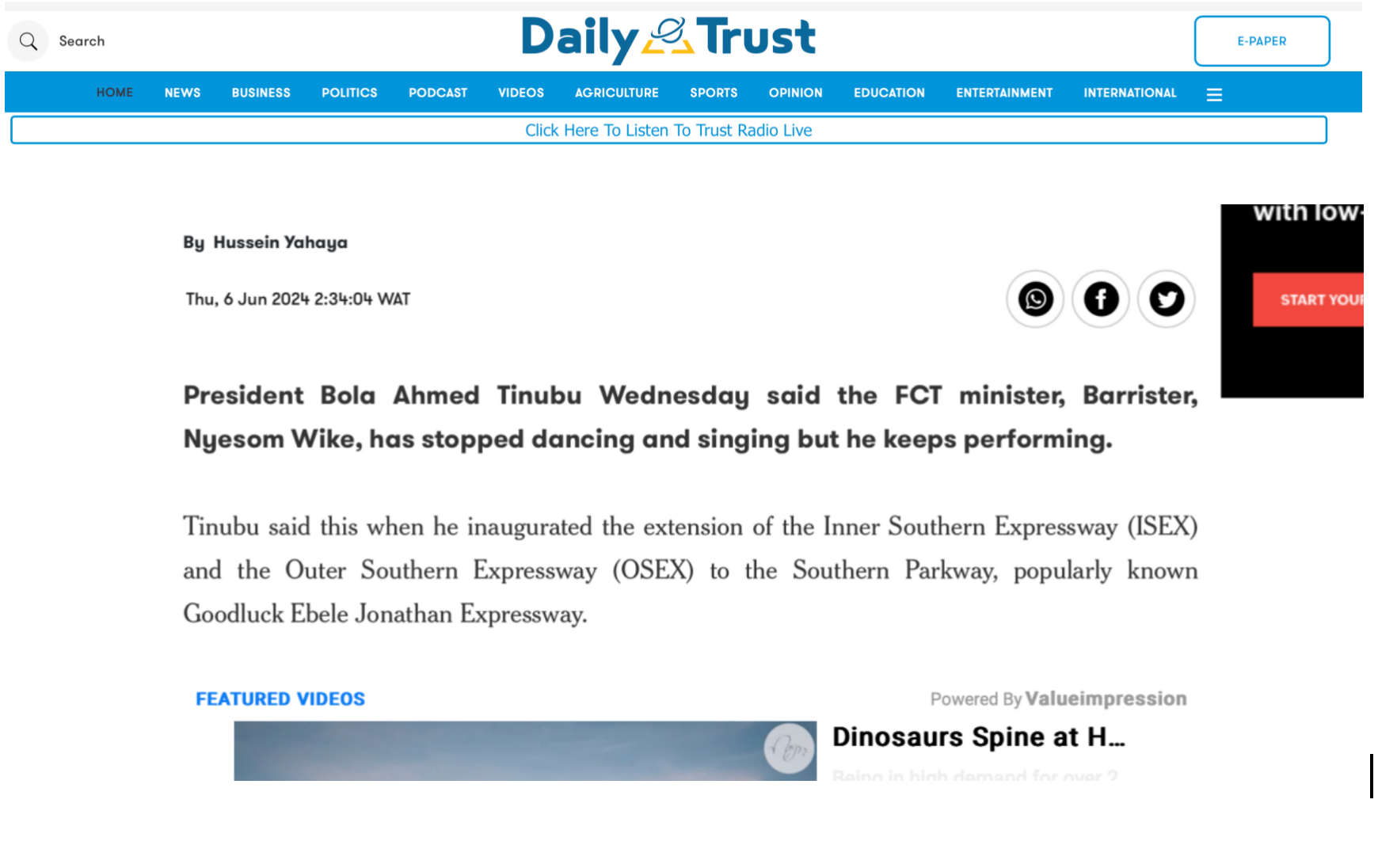 尼主流媒體CHANNELS現(xiàn)場直播