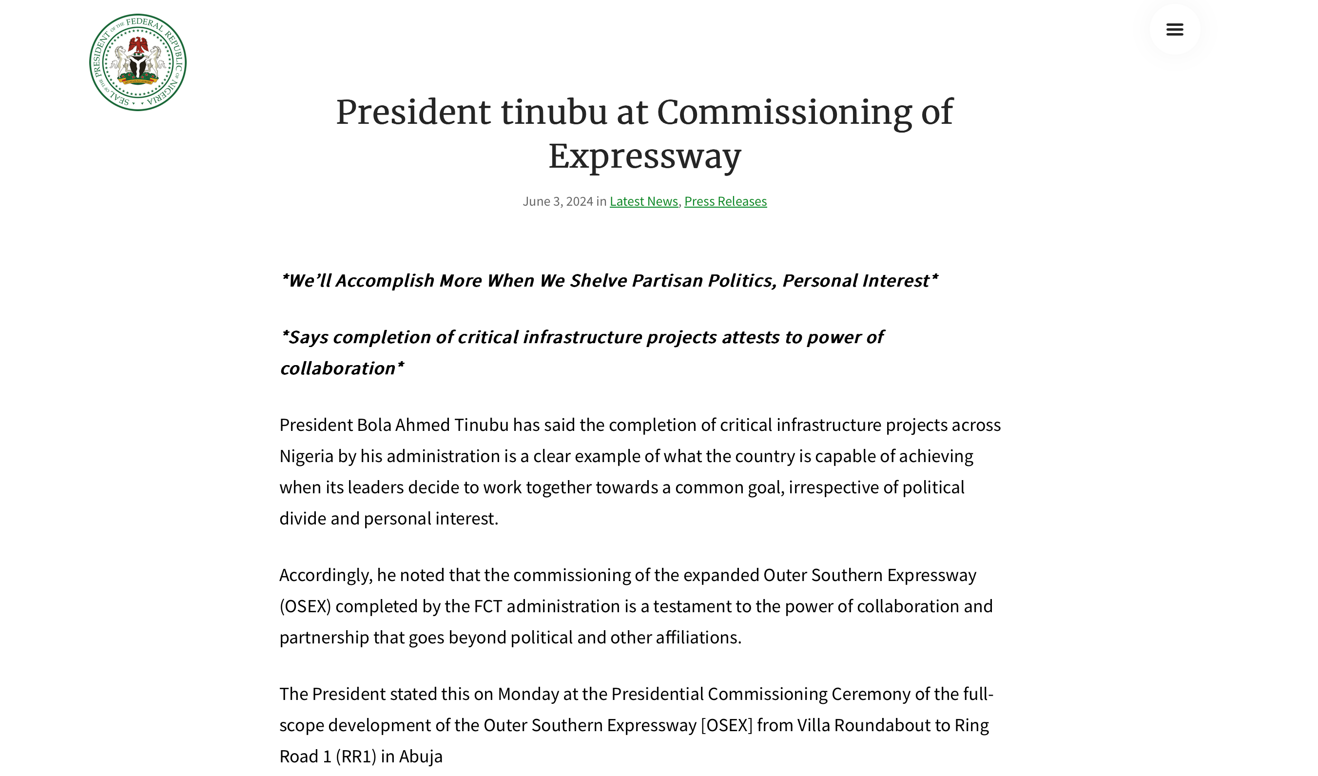 尼日利亞總統(tǒng)府官網(wǎng)